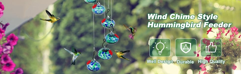 - 【Innovative Wind Chimes Feeder】 A creative blend of windchimes and humming birds feeders for outside, providing multiple feeding spots. A versatile addition to any indoor or outdoor space.