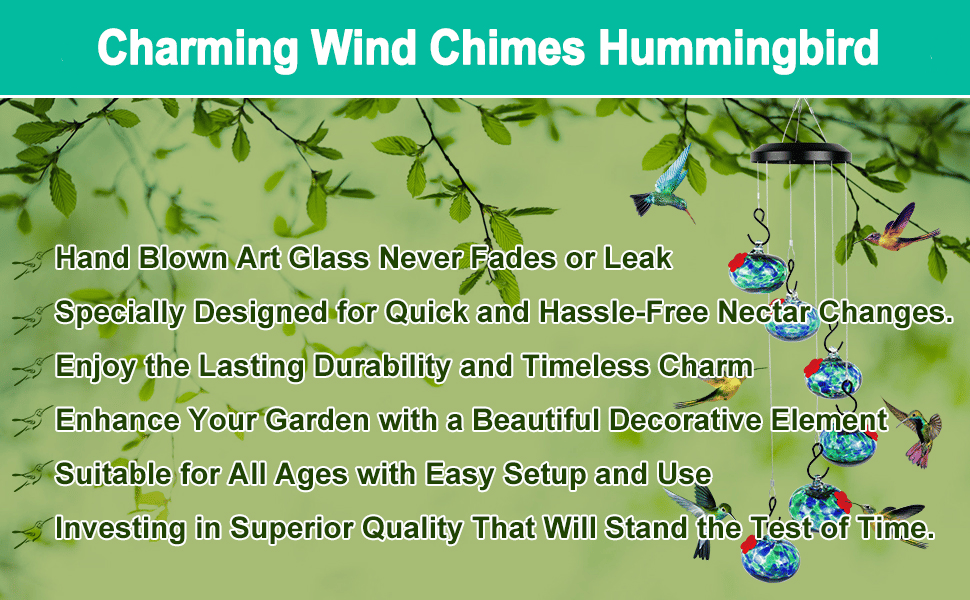 - 【Hassle-Free Hanging & Moving】 Lightweight and sturdy, this enchanting wind chime humming bird feeder is a breeze to hang and reposition, making it the perfect decorative piece for patios, gardens, decks, backyards, front porches, and bedrooms.