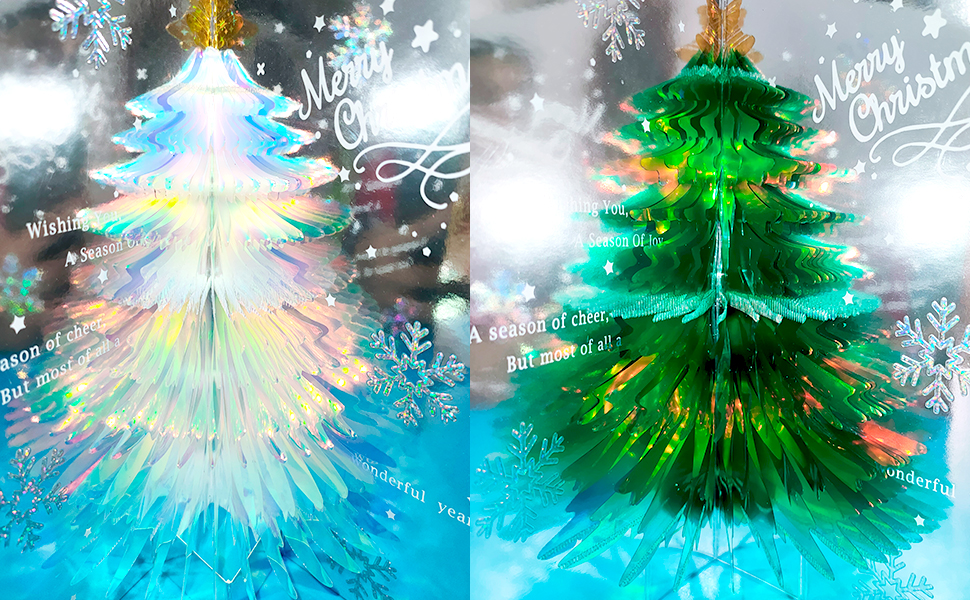 💕Superior material - The color of the three-dimensional Christmas tree is refined with PET material, the color of the greeting card is thick cardboard, the envelope is made of milky white sulfuric acid paper, and hot stamping and laser technology are added.