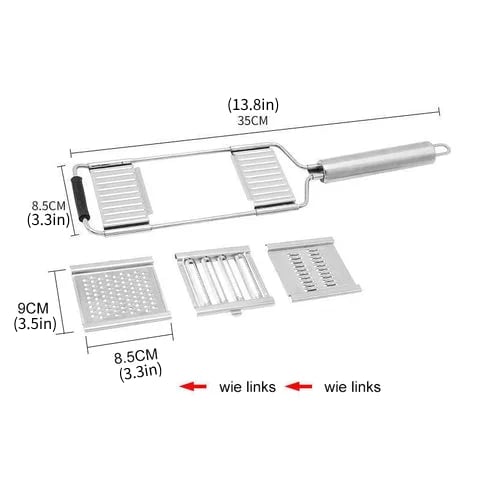 The knife features three/four interchangeable blades that allow you to cut, chop and grind vegetables with ease.